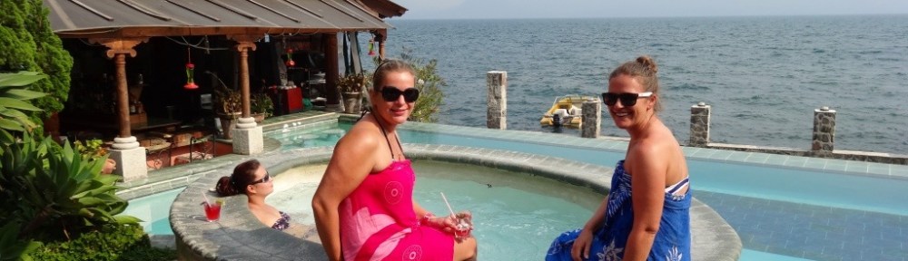 A group of us decided on a hike to a neighbouring village the next day and we set off at nine. I’ve done so much less hiking or anything since being in Central America and as half our party were Swiss mountain goats they pushed the pace I struggled, a bit beetroot and very dusty having completely fallen flat on my face we arrived after 2 hours instead of 3! The walk was a bit challenging anyway as some very steep up and downs, but the scenery across the lake was second to none despite a haze which didn’t quite give me the volcano photo I wanted. Myself and an English girl who we found out had an alarming amount in common took a boat back most of the way and stopped off at a smaller village where we had a very decadent afternoon by an infinity pool supping cocktails over looking the lake…and all for £13!