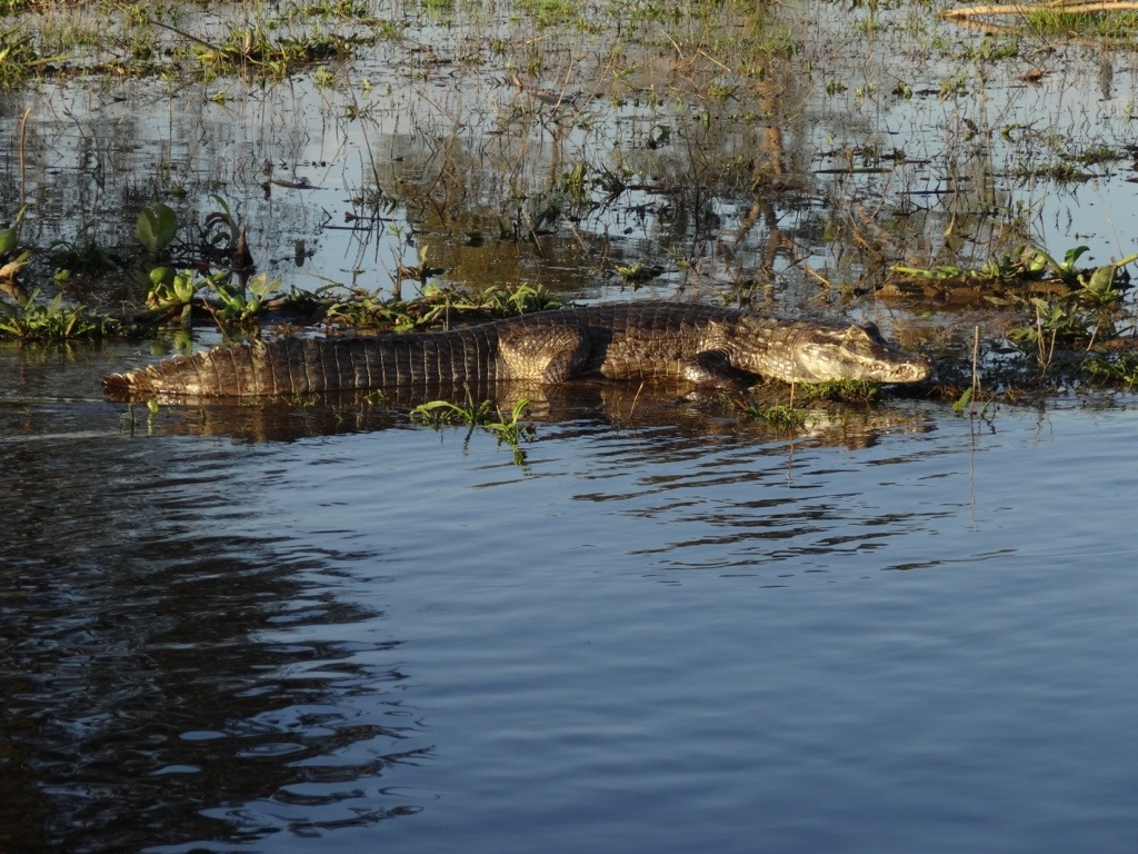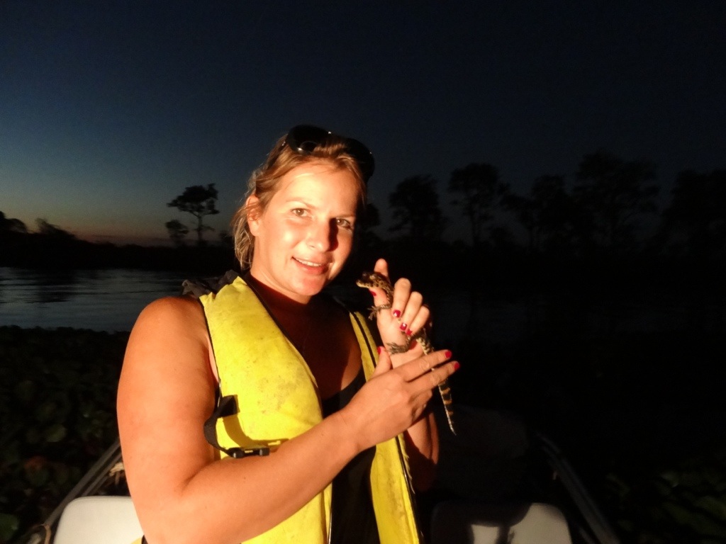 We arrived at our riverside lodge and headed straight out on the river for a safari. The amount of birdlife is incredible, and we saw toucans, kingfishers, storks, cranes, parrots, monkeys, caymans and capybaras within the first hour. I hadn’t understood how long we were out for, and regretted wearing just shorts and a vest top as the sun set, the Mosquitos came out in force and the temperature dropped. We had forty minute piranha fishing but I was more worried about damn mosquitoes and caught nothing, a few others were a little more successful. With the sun fully set we headed further up river on the hunt for the elusive Jaguar….to no avail!