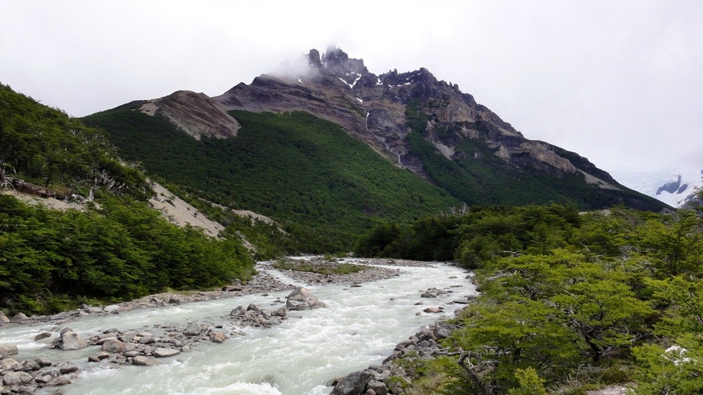 On arriving back in town I the took the evening bus to El Chalten, which is a another major hiking destinations with the infamous Cerro Fitz Roy. I arrived at my hostel “El Rancho Grande” at ten pm, paid and checked in, looked at my room, went to the bathroom, asked to change rooms, they couldn’t accommodate me, walked up the street and after three more hostels found another hostel. Returned to original hostel to tell them I was leaving at which point they said they could move me, but I was decided. This has been the first hostel I’ve just not wanted to stay a single night in, it was full of huge groups, crowded, noisy, I could hardly get to my bed for others people’s stuff all over the place, and the bathrooms were rubbish. If I’d only been staying for one night and not really doing anything the next day I would have stuck it, but as the reason I was there was to do some hiking etc I wanted some decent sleep. Anyway the place I found was way nicer and quiet, (yes sounding even older!). There was also a French girl from my hostel in Bariolche staying there, so we hiked the following day together. She didn’t speak much English, but good Spanish so another day for me to practice the lingo. We hiked up to a lake with a glacier, but after the previous day’s Glacier it was pretty underwhelming! It also rained most of the way, and all the mountains were behind the clouds. But it was still a pretty trek with changing scenery and some moderately challenging ups and downs.
