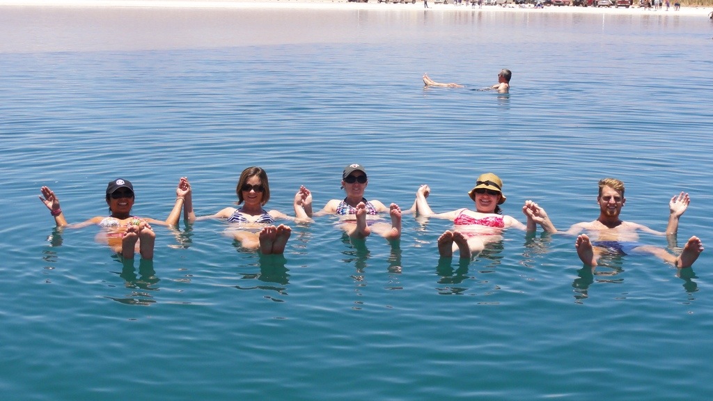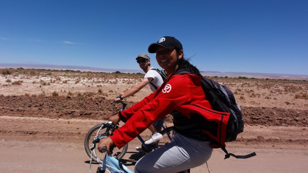 Sunday we hired mountain bikes for a nice easy 20km cycle out to the desert to some salt lakes. It all started off pretty easy until one of our party had a flat! Four of us had cycled off not realising, when we saw our guide and the one girl were no where to be seen we cycled back to find they had successfully changed the tyre and just needed to pump up the new tyre. Fifty minutes later with six of us trying and failing to get the thing inflated we were about to let her walk back to town when another cyclist helped us out with a pump that actually worked and we were back on the road again! We arrived at the lakes, and parked our bikes up at which point I didn’t fully acknowledge a small jagged rock wall, fell and quite badly scraped my leg leaving a nice raw area bleeding. Perfect for getting into 40% salt concentrated water!! owwwwwwwwww!!! The lake was very cool, and it was hilarious trying to swim breast stroke as your feet would keep being floated above the water as you tried to kick, which made for some fairly ungraceful swimming! With my leg stinging just a tad I didn’t stay in for too long. The cycle back in the full heat of the day was really hard work, and seemed twice as far. And the poor girl who’d had a flat on the way got another on the way back two km shy from town!! Luckily we had time for a siesta that evening before heading out for a great dinner and a few bottles of wine in preparation of the following three days desert crossing in 4×4 and some serious altitude!